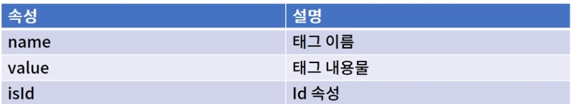 - 노드의 이름, 태그에 따라 다른 값 지님