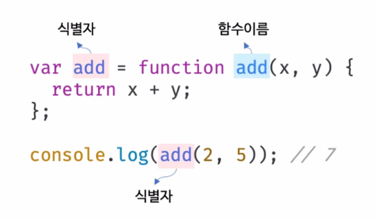 * 여기서 알 수 있듯이 함수는 함수 이름으로 호출하는 것이 아니라 함수 객체를 가르키고 있는 식별자로 호출한다.