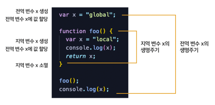 - 지역 변수의 생명 주기는 함수의 생명 주기와 일치한다.