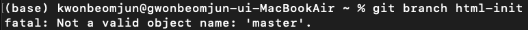 git branch 오류 fatal: Not a valid object name: 'master'. 해결방법 본문