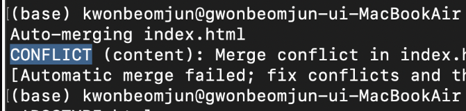 우선 Merge가 되면서 충돌을 일으킨거다.