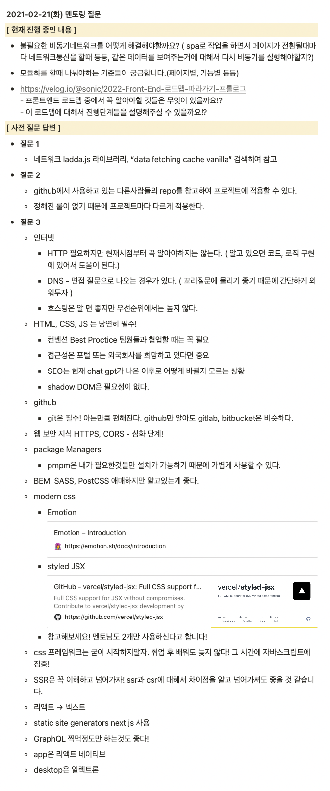 - 매주 멘토링을 통해서 궁금한 사항들을 질문하고 그룹스터디에 대해서 방향들을 잡아주신다.