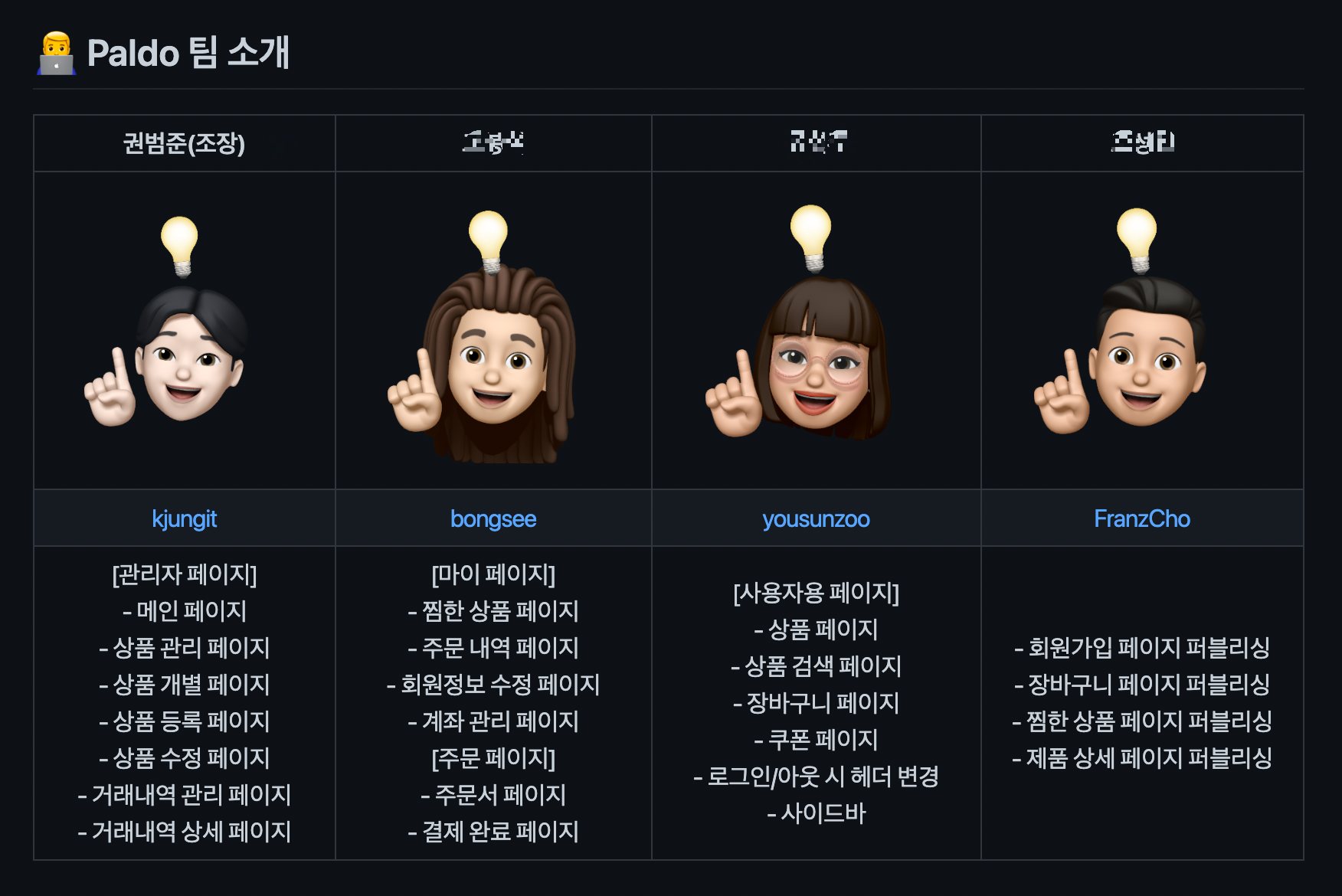 - 여러 의견들을 조율하고 프로젝트에 반영해야하는 것들