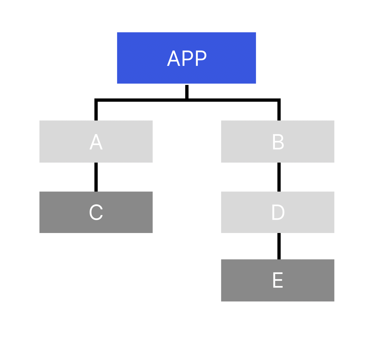 - C, E가 만약 data가 필요하다면? 단계별로 하나하나 거쳐서 데이터를 전달해줘야한다.