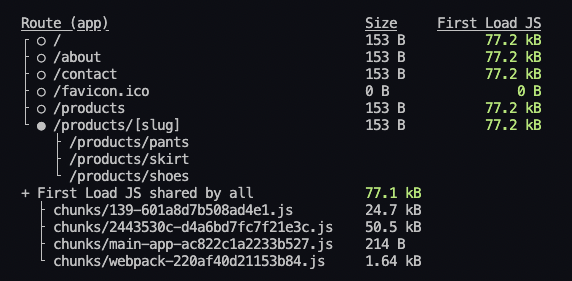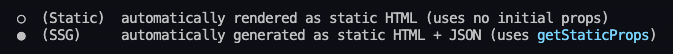 - 빌드 후 상태를 보게되면 지정해둔 페이지들은 ssg로 만들어져있는걸 볼 수 있다.