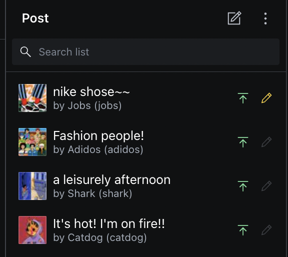 - title user의 name, 그리고 subtitle은 username을 볼 수 있도록 media: 에서는 등록한 프로필 이미지를 보여지도록 하게 수정할 수 있다.