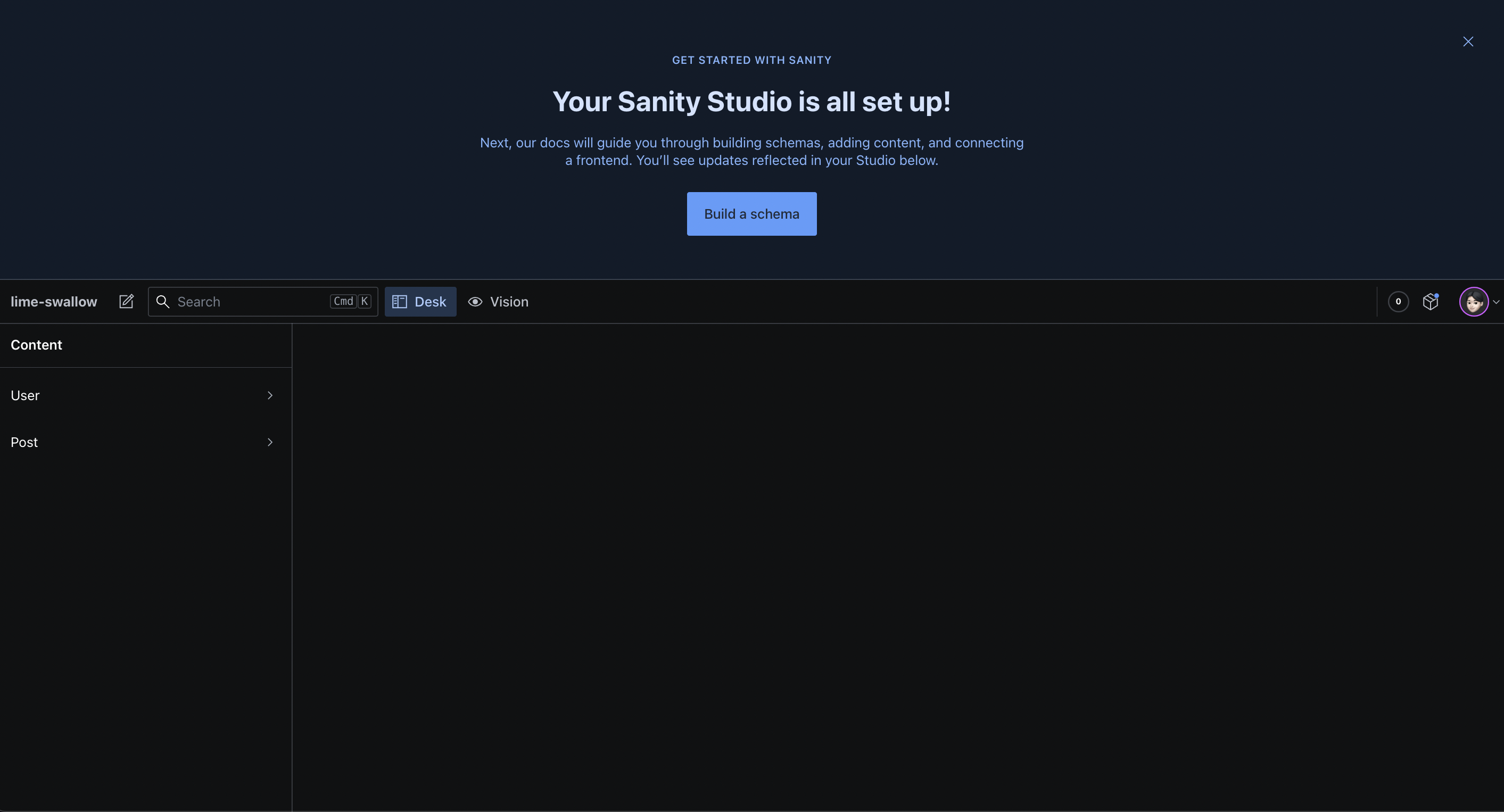 만약 front와 같은 repo를 사용한다면 당연한거지만 senity를 설치한 폴더경로로 들어가서 yarn dev를 실행하자.
