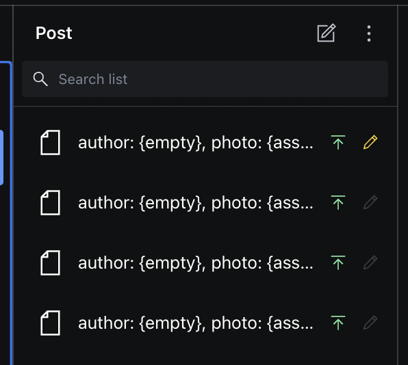 - 기본 sanity-studio를 사용하게되면 해당 데이터를 눌러야 데이터를 볼 수 있는걸 알 수 있다.