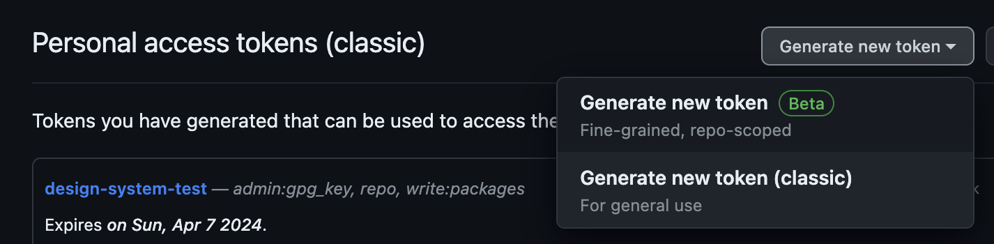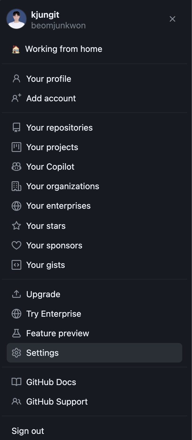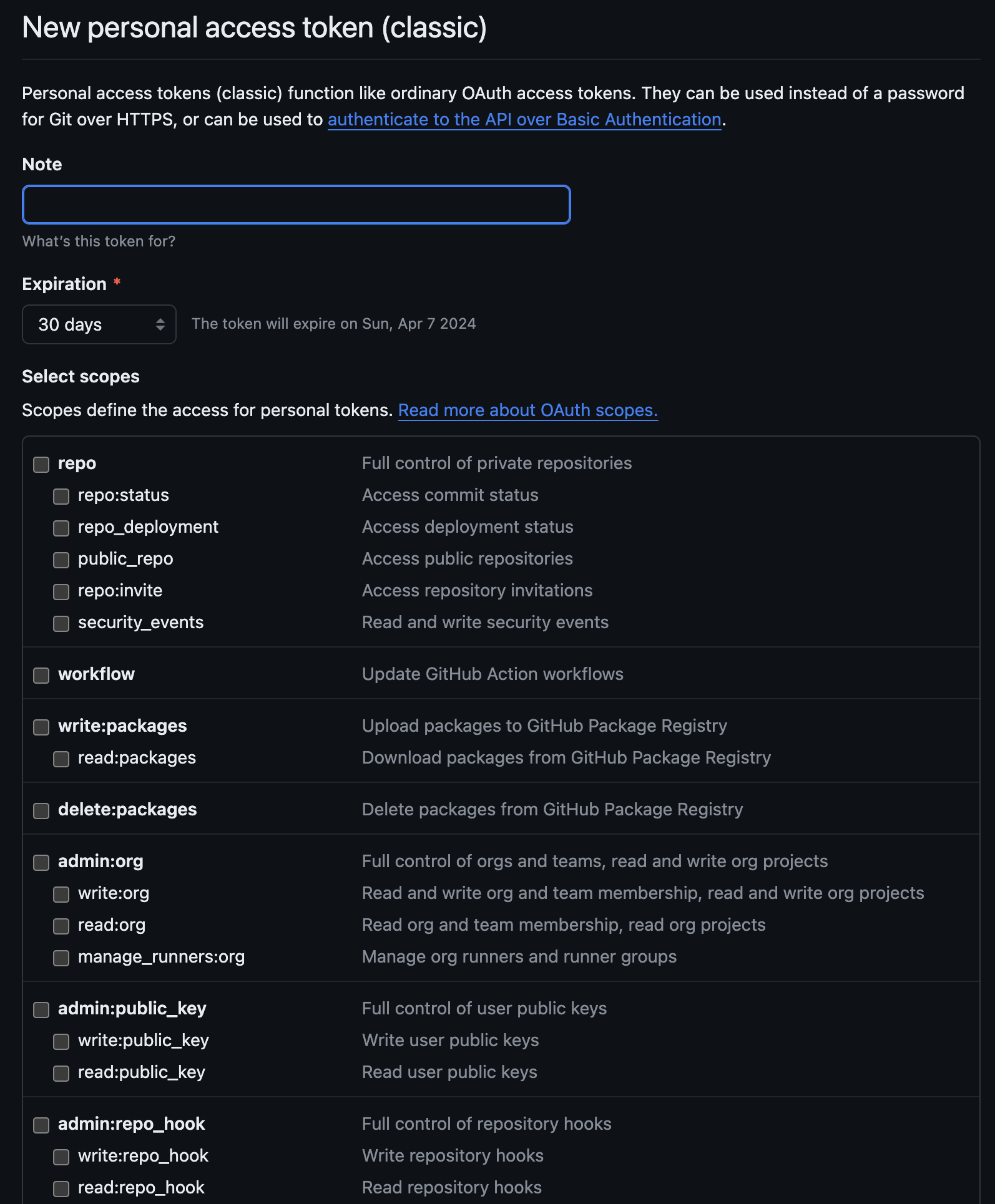 우측 상단 개인 프로필 -> Settings -> Developer settings ->Token(classic) -> Generate new token
