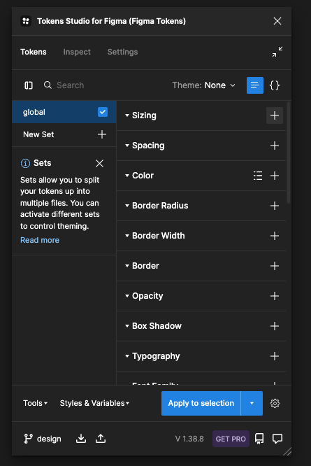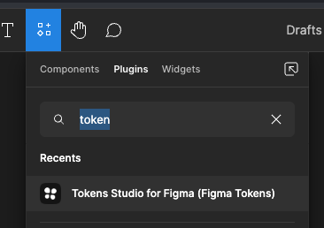 - 피그마에서 이제 플러그인을 검색하여 Tokens Studio for Figma를 열어준다.