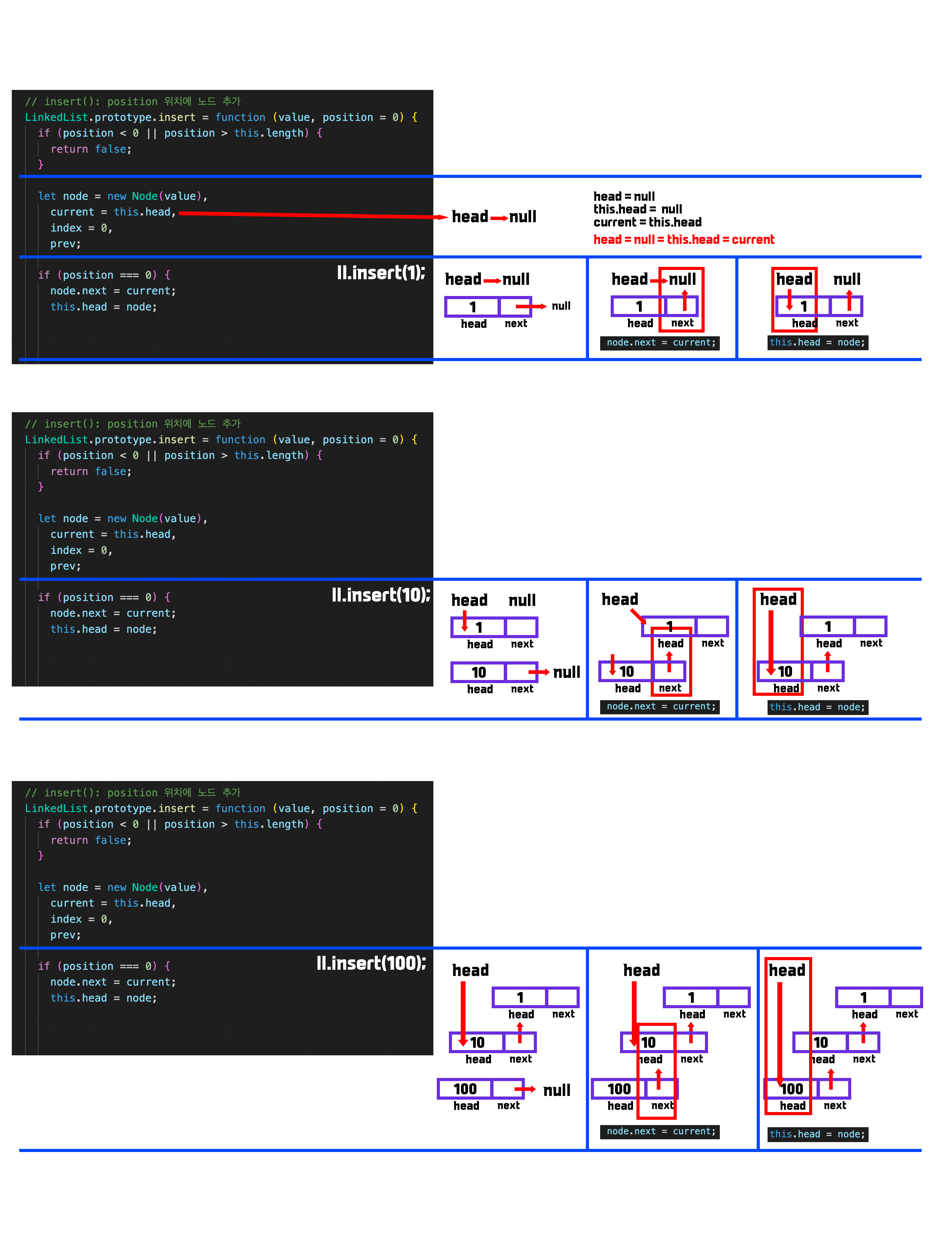 if (position === 0) { // position이 0이면 head를 value에 연결하고 .next를 처음에 있던 node로 연결한다.